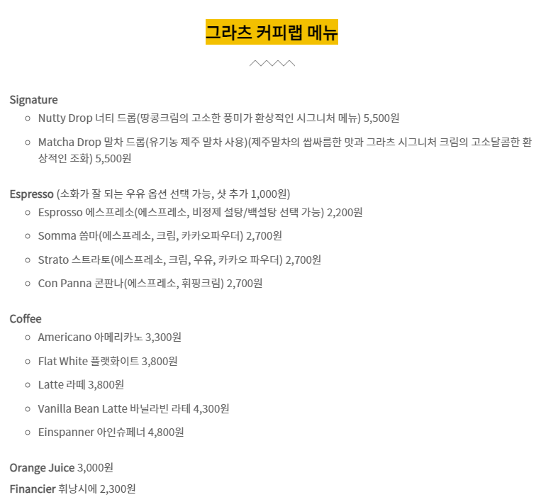 그라츠 커피랩 메뉴
